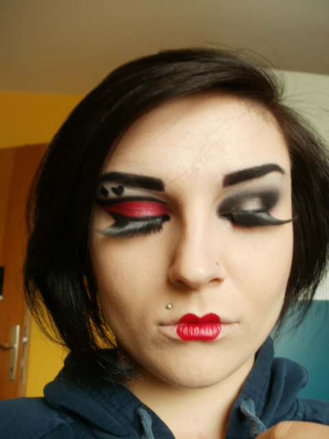 I am not 100 % satisfied (just 99,9 % ;P) with my today's look, because I ran out of white face paint and I couldn't fix what I wanted to fix! I guess I had been doing a lot of skull and clown makeup looks in the past ^^.